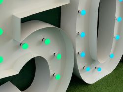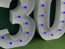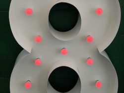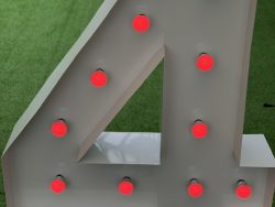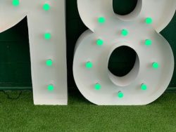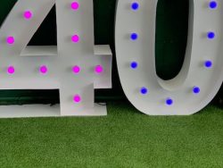 You have the option to customise your letters and numbers with coloured bulbs, adjustable to suit your event’s colour palette.