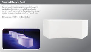 These curved benches can seat at least two people used on their own or they can be set around a round or square table for casual entertaining, or alternately they can be joined together with other curved bench seats to create a snaking effect.